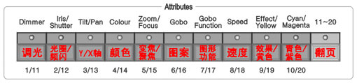 为通道关联一个属性键。属性键即控台上"Attributes"区的按键。