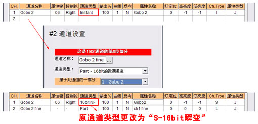 3. 当前设置的通道若为其它某个通道的微调通道,则选择"Part-16bit的微调通道"。