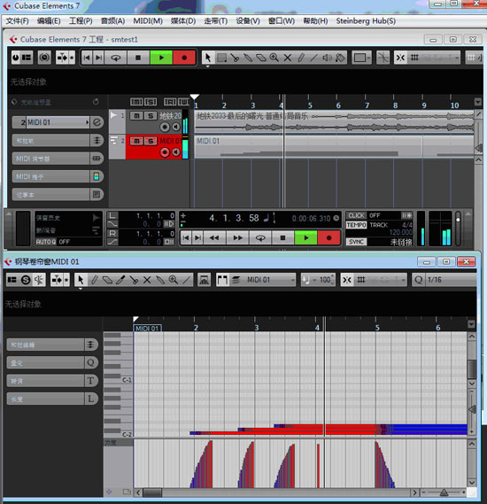 2、运行Cubase,注意:MIDI线必须设置好。